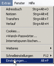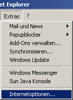 Öffnen Sie den Internet Explorer und rufen Sie unter "Extras" die "Internetoptionen" auf.