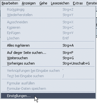 Klicken Sie auf "Bearbeiten", "Einstellungen"